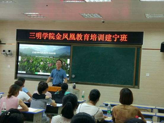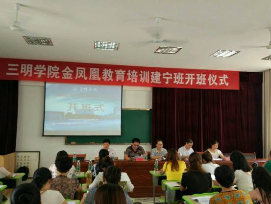 73日上午,由三明学院继续教育学院、三明学院信息工程学院、三明学院校友会主办,建宁县教育局,建宁县进修学校承办的三明学院金凤凰教育服务培训(建宁班)正式开班,开班仪式在建宁县城关小学举行,参加培训的是全县中小学、幼儿园各学科的一百多名教学骨干教师。开班仪式由进修学校校长刘方钦主持,三明学院继续教育学院陈荣生院长出席开班仪式并讲话,陈院长鼓励学员做“立师德、有本领、有情怀”的好教师。教育局局长丁升作重要发言,丁局长就进一步提高培训实效性向学员提出四点要求:一严守纪律,二勤奋学习,三加强交流,四学以致用。
