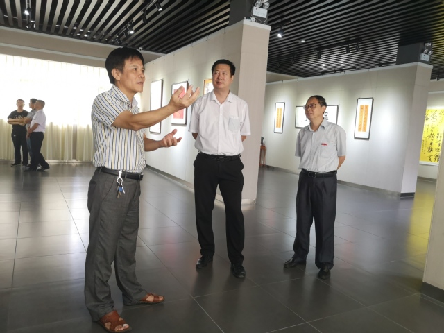 9月10日下午,三明学院党委委员、副校长吴龙在继续教育学院、文传学院以及书画院有关领导和教师的陪同下参观了书法展。