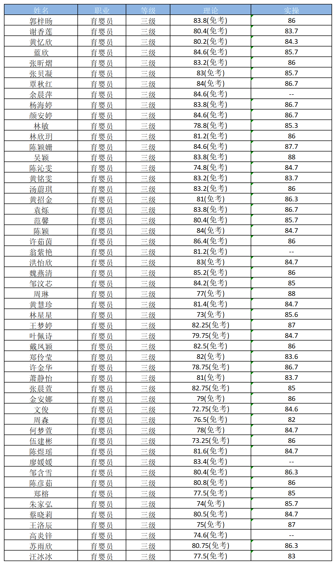 20251227批次职业技能等级认定成绩公告(育婴员)